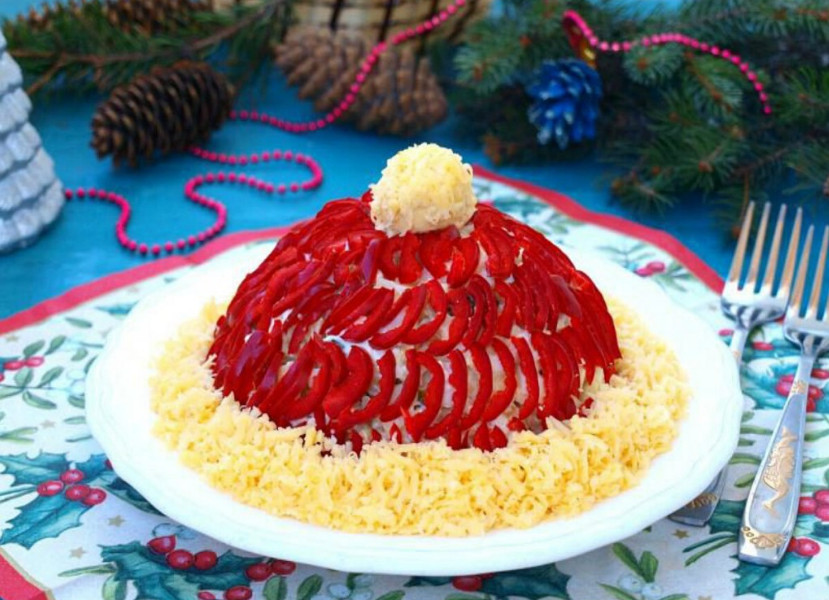 Новогодний салат "Шапка Деда Мороза"