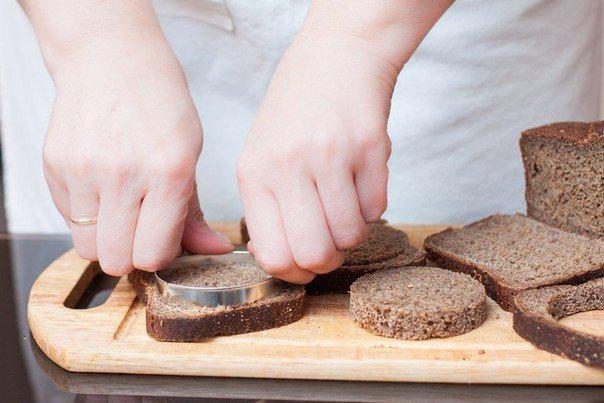 4. Свекольное пюре должно немного схватиться, прежде чем выкладывать его на хлеб, поэтому вырежьте пока круглые заготовки из ржаного хлеба.