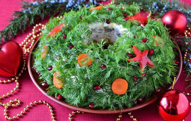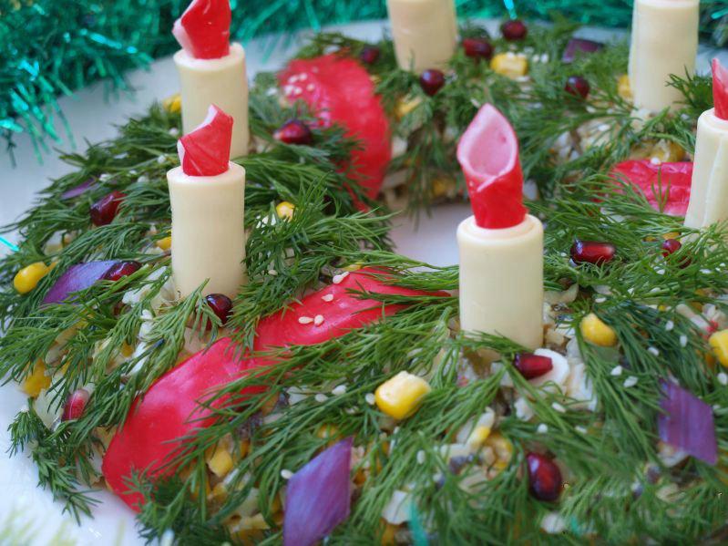 Вот еще несколько идей оформления салата "Рождественский венок"