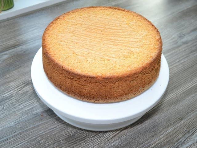 12. Далее – очень ответственный момент. С помощью острого ножа срезаем сверху бока бисквита, так чтобы всё наше изделие приняло форму конуса.