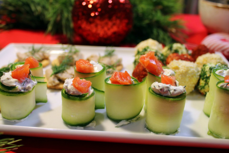 Закусочные рулетики с лососем и огурцом