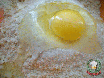 Хорошо перетереть и вбить яйцо, влить 1 ст.л. ледяной воды.
