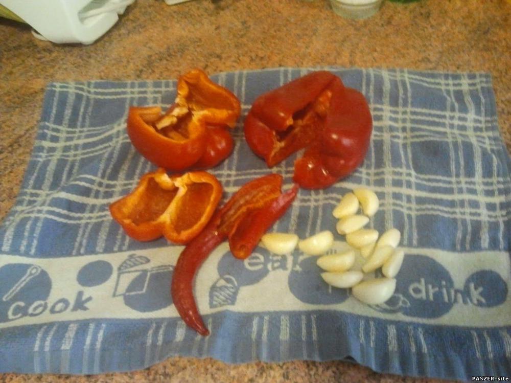 Чеснок чистим, перцы сладкие и острые освобождаем от плодоножек и семян.
