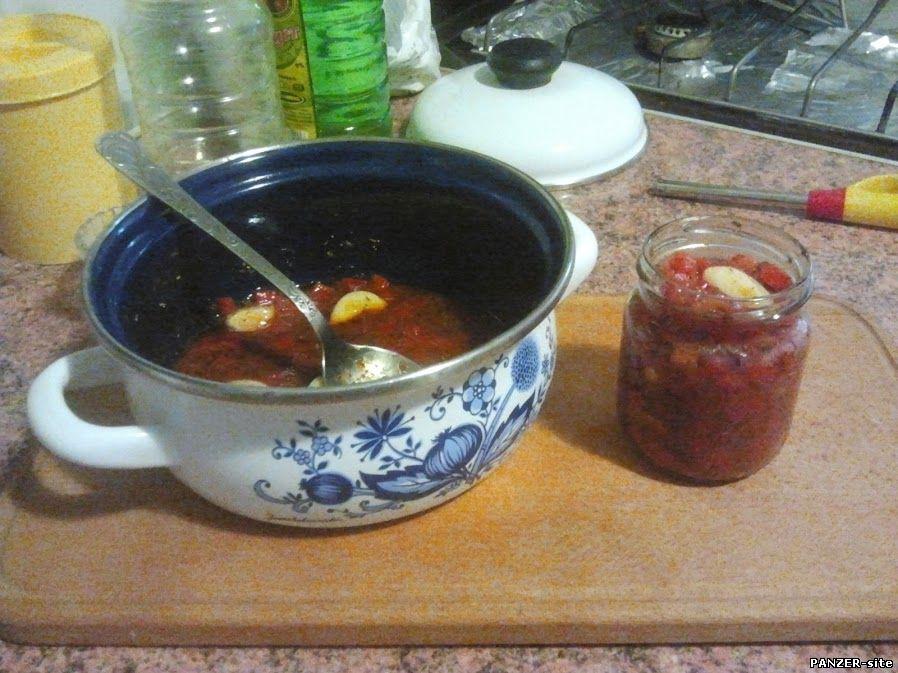 Закуска из чеснока в томатном соусе