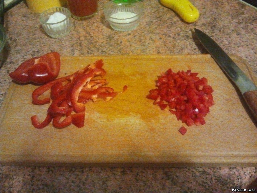Чеснок, ясен пень, чистим, перец освобождаем от семян и плодоножки и рубим на мелкие кубики.