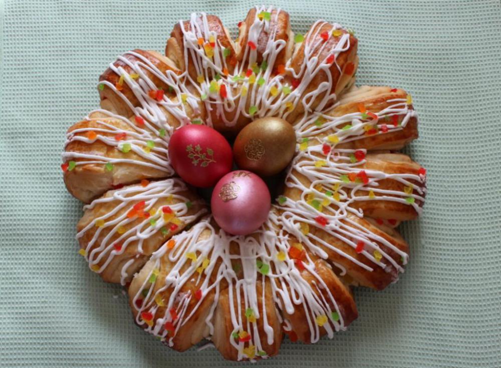 Пасхальный венок или цветок, который является символом вечной жизни, наряду с разноцветными пасхальными яйцами, пасхами и куличами, украсит ваш праздничный стол. Наши бабушки в этот Святой день также пекли пасхальные венки и цветки, которые непременно нужно было съесть каждому члену семьи. Считалось, что если съесть всей семье по кусочку от пасхального венка, семья будет жить дружно и без ссор. Попробйте и вы испечь эти чудесные сдобные веночки. Наш рецепт - вам в помощь!