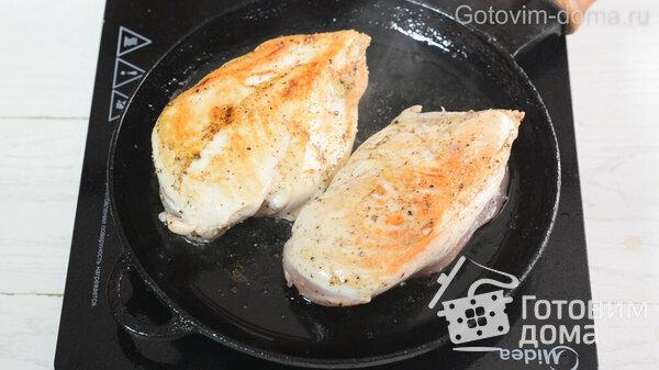 Ставим сковороду с куриным филе в разогретую до 180 градусов духовку и запекаем 7-10 минут (в зависимости от размера филе).