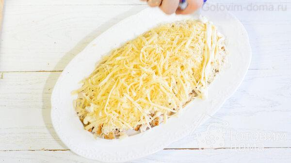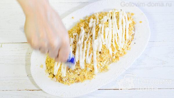 Грецкие орехи рубим ножом, не очень мелко, и выкладываем следующим слоем.