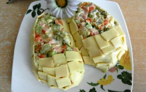 Очень простой и быстрый вариант эффектного оформления салата в салатнике: