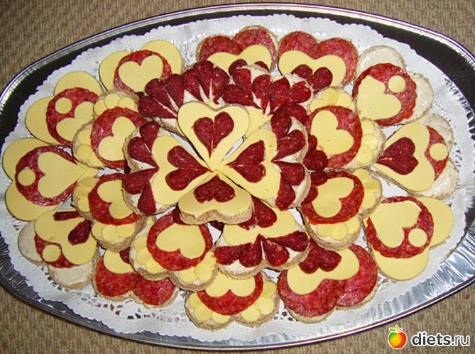 Практика показала, что лучше положить на «6 часов» один из самых мягких сыров, а все последующие сорта сыров по возрастанию остроты вкуса начинаем накладывать так, как идут часы, потому, что попробовав первым сыр с ярко выраженным вкусом, мы не будем ощущать вкуса нежных и мягких сыров.