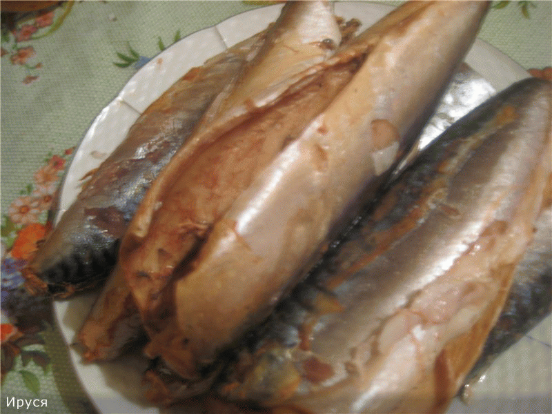 Ну а теперь внимательно смотрим на часы, как только вода снова начала кипеть, уменьшаем огонь до среднего и ждем 3 минуты. Выключаем газ и достаем из кастрюли нашу золотистую, умопомрачительно вкусную скумбрию " горячего копчения ")))