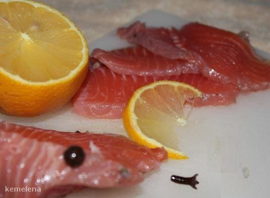 Маринованная семга с лимонным соком, кориандром и перцем (БЕЗ СОЛИ!!!)