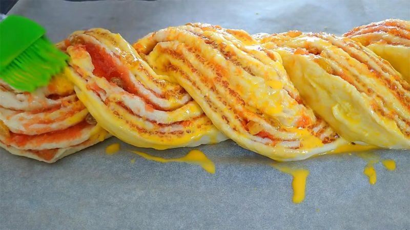 Закрутить косичку. Смазать желтком.