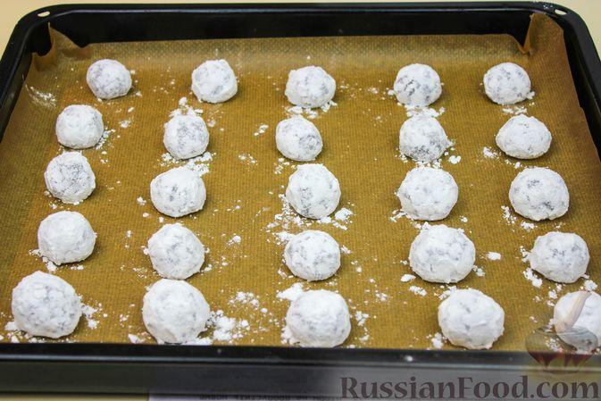 Каждый шарик обваливаем поплотнее в сахарной пудре.