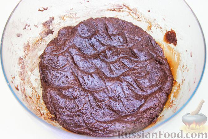 В полученную массу постепенно добавляем смесь сухих ингредиентов, перемешиваем. Готовое тесто накрываем пищевой пленкой и убираем в холодильник на 30 минут.