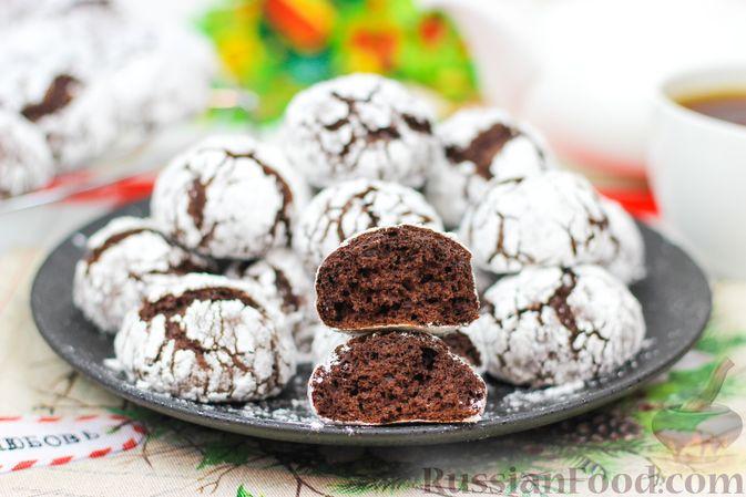 Шоколадное печенье с трещинками красивое и очень вкусное, просто тает во рту. Печенье в меру сладкое, внутри мягкое и рассыпчатое, с хрустящей корочкой. Прекрасное украшение праздничного стола, особенно красиво смотрится на рождественском и новогоднем. Готовится просто и быстро.