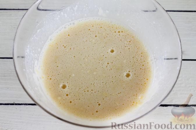 Понемногу добавляя молоко, взбейте массу с помощью венчика до однородности. Должно получиться густоватое тесто, как на оладьи.