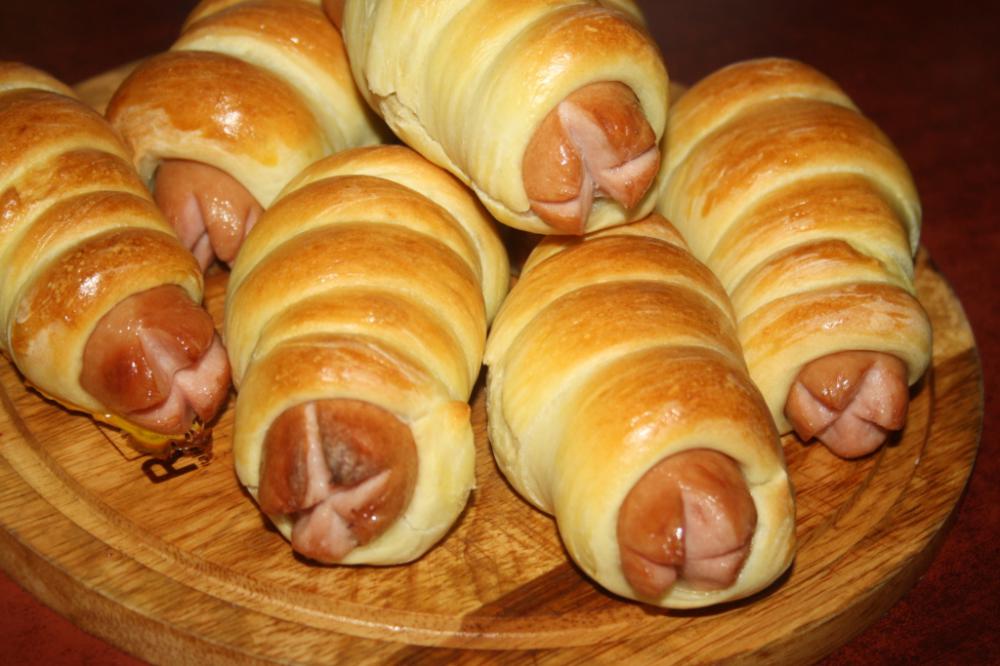 Запекание сосисок в дрожжевом тесте