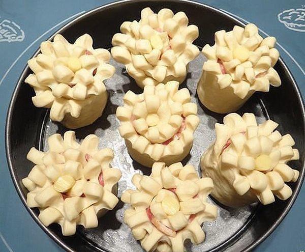 Пирог «Цветы» с беконом и сыром