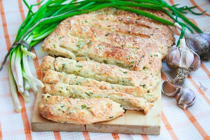 3. Раскатываем овальную лепёшку, в которой делаем несколько сквозных поперечных разрезов.