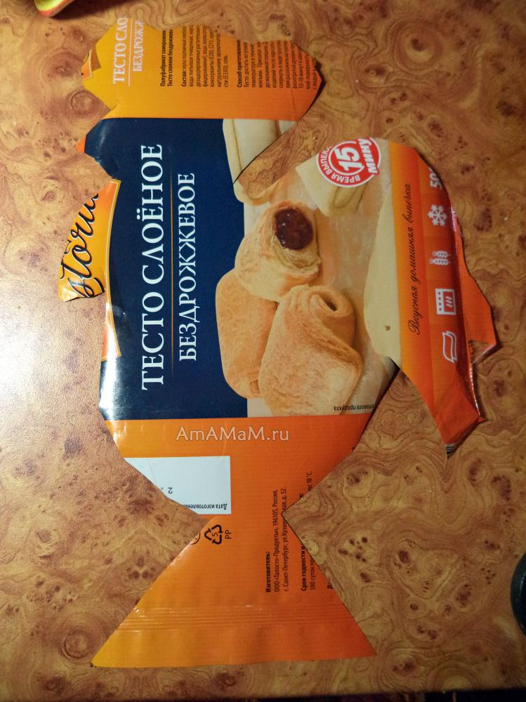 Тесто слоеное (дрожжевое или бездрожжевое) – 400-500 г (упаковка) или простое дрожжевое тесто;