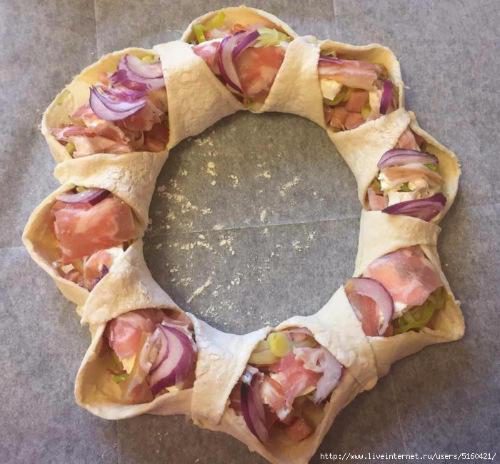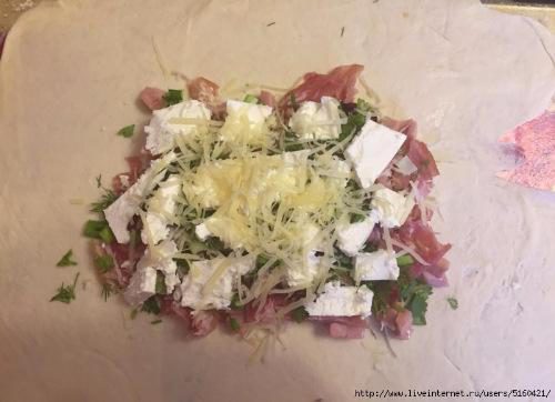 Если захотите такое приготовить, думаю, что и слоеное тесто отлично подойдет.