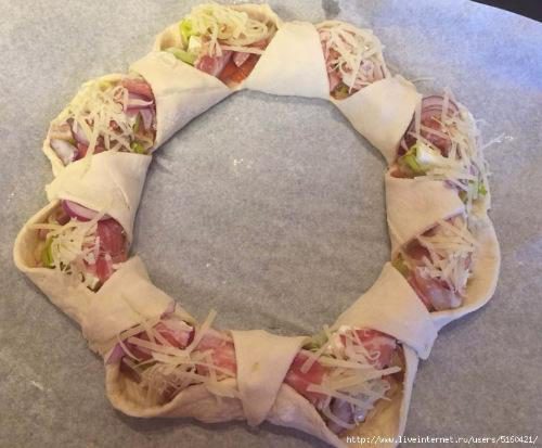 Из оставшегося обрезанного теста раскатала пласт