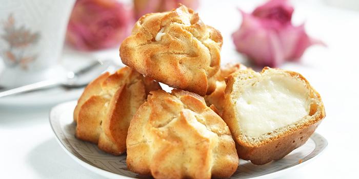 Воду добавить до кипения, добавить маргарин или сливочное масло, соль, всыпать пшеничную муку, постепенно помешивая пока тесто загустеет. Затем выложить тесто во взбивальную машину и добавить поочередно яйца. Сетку выполнить из корнетика. Выпекать в предварительно разогретой духовке.