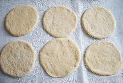 Между каждыми двумя тестяными кружочками поместить кружочек из колбасы.