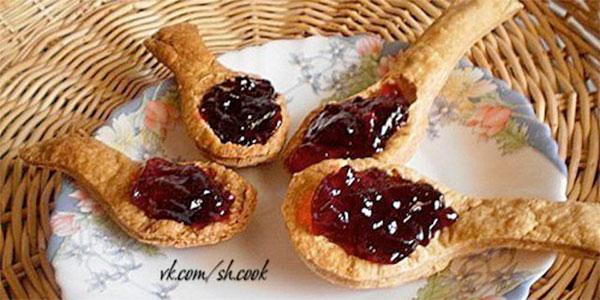 2) Или в уже выпеченных тестяных ложках острым ножом срезать получившиеся "крышечки" и сделать углубления, в которые можно что-то положить.