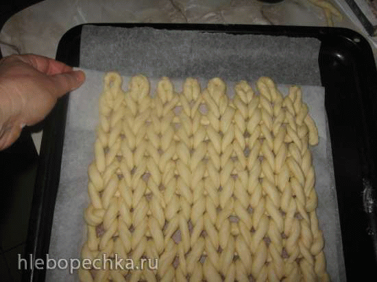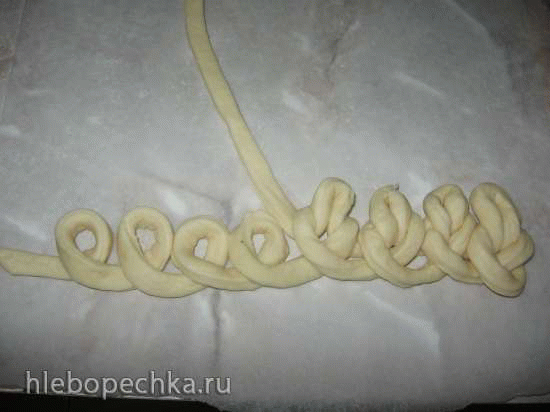 Места соединения жгутов смазывать смоченной в воде кисточкой и тщательно защипать тесто. (*хочу сказать, что плести совсем не сложно, особенно тем, кто знаком с вязанием)