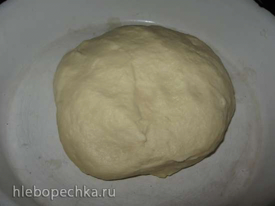 Смешать дрожжи с солью (если использовать свежие дрожжи, то перетереть их с солью) добавить молоко, муку, сахар, размягчённое сливочное масло. Замесить тесто. Тесто должно быть не густым и тяжелым (лучше потом перед разделкой припылить мукой), быстро в процессе замеса начинает отлипать от рук.