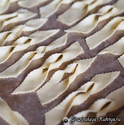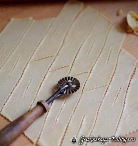 Нарезаем полосками и формируем хворост, как обычно это делали для фритюра.