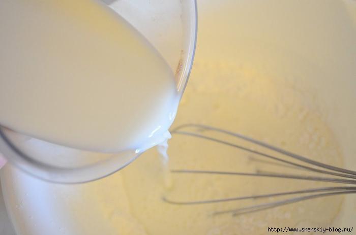 2. Влить молоко и перемешать.