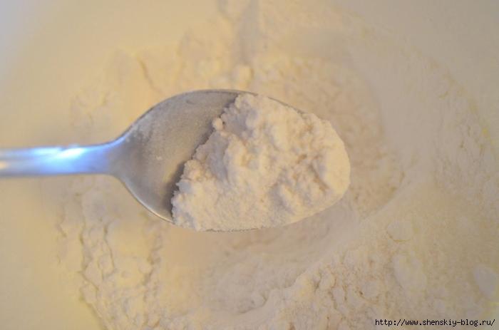 1. В большой миске смешать муку, крахмал, сахар и щепотку соли