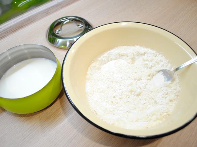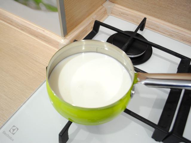 2. Молоко согреть до состояния, чтобы оно было едва теплым. Проверить это можно, опустив мизинчик в жидкость. Горячее молоко не использовать, иначе мука сразу же запарится и не образуется нужное количество клейковины.