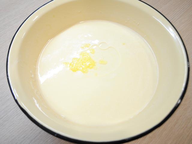 6. Через 30 минут добавить в смесь масло. Сливочное масло нужно растопить на водяной бане. Раньше его не добавляйте. Оно не даст самым лучшим образом объединиться всем компонентам. А это отразится на качестве конечного результата.