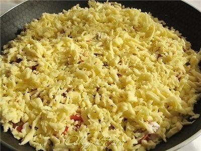 И засыпать толстым слоем сыра (который быстро плавится)