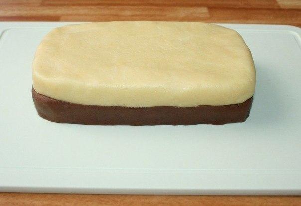 5. Светлое и темное тесто раскатать в пласты одинакового размера (14х9 см.)