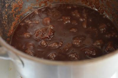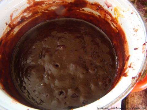2. на утро добавляем оставшиеся 250 гр сахара, ванилин, какао и все пермешиваем. Доводим до кипения и варим примерно 1,5 часа-2 часа.