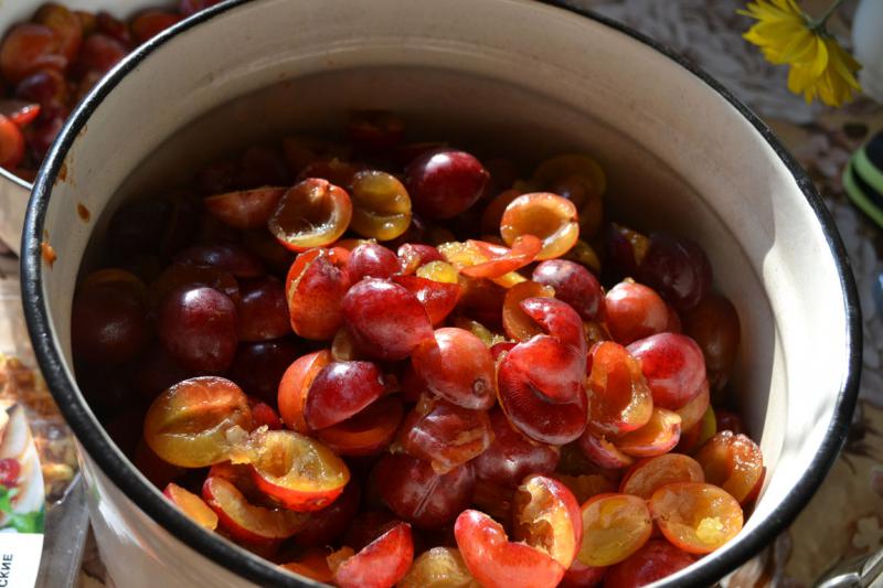 Подготовленную сливу нужно засыпать сахаром и оставить на несколько часов в прохладном месте, чтобы дала сок.