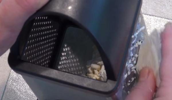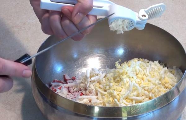 Выдавливаем чеснок 4 головки.