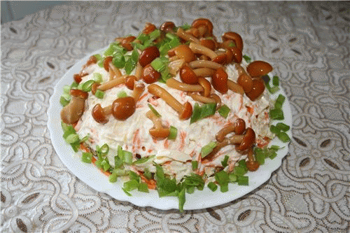 Салат с крабовыми палочками и грибами