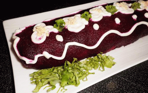 На украшение капуста краснокочанная для окрашивания селёдка слабого соления – 1 шт.