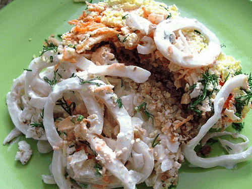 Салат с кальмарами и орехами «Морские фантазии»
