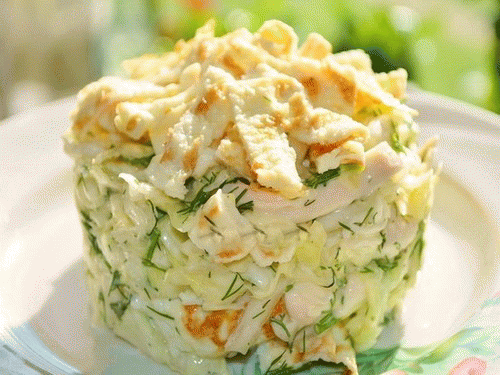 Салат с капустой и яичными блинчиками