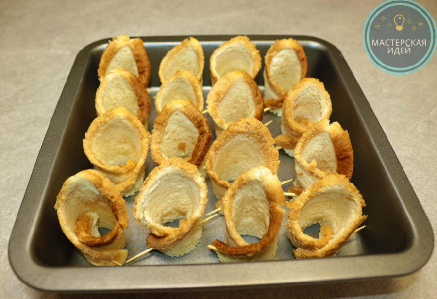 Обращаю ваше внимание, хлеб для тостов лучше использовать свежий, чтобы при раскатывании он не крошился и не ломался.