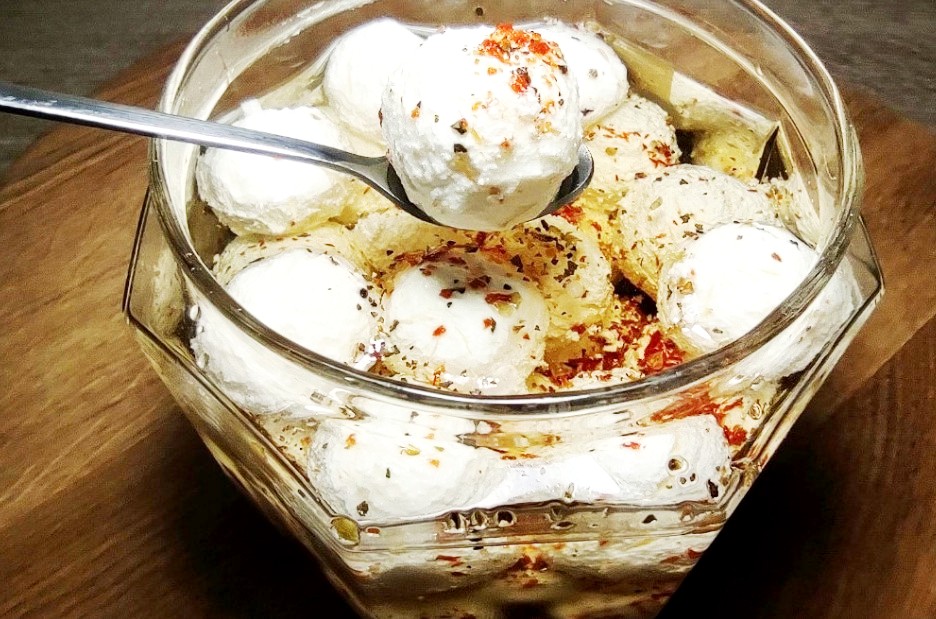 В масле со специями творожные шарики хорошо хранятся и не высыхают.