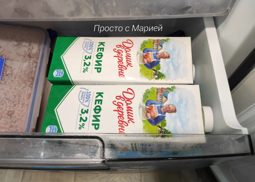 Коробки с кефиром убираем в морозильную камеру до полного замерзания. Можно оставить их там на всю ночь или даже несколько дней, а потом использовать по мере необходимости.