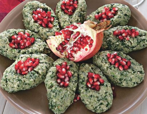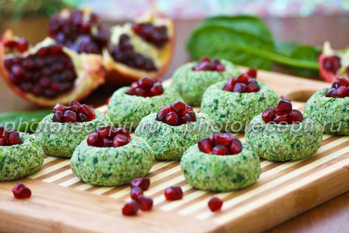 Можно просто выложить пхали на тарелку и украсить зернами граната